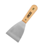 Espátula flexible y rígida con mango de madera Hoja fabricadas en acero templado y con pulido espejo. Desbaste al final de la hoja con mango de madera estufada, pulida y laqueada. Hojas ensambladas a todo lo largo del mango garantizan firmeza y duración.